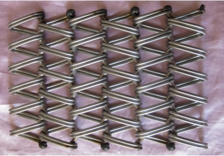 雙股網帶:集中了金屬絲編織網帶的各種優(yōu)點,它用并列的兩個網條做網面,通過曲軸或直軸串連,網面平整,也最大限度地減少網帶變形和延伸。